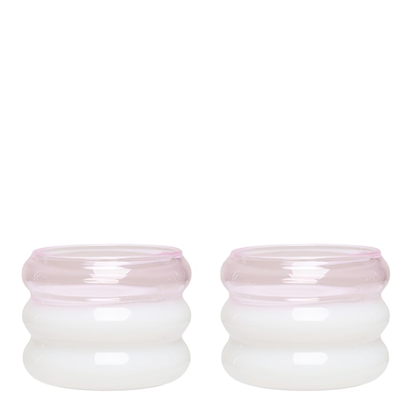 Bubble. värmeljushållare, 2-pack från Design Letters, är små, dekorativa ljuslyktor som sprider ett varmt och rogivande sken. Setet innehåller två ljuslyktor tillverkade i genomfärgat borosilikatglas – ett slitstarkt material som tål stora temperaturväxlingar och lämpar sig väl för både vardag och fest.