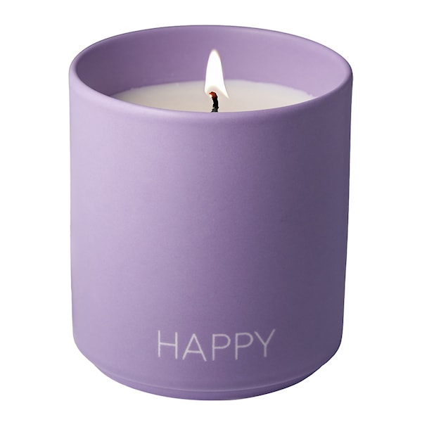 Favourite doftljus HAPPY 8x8,7 cm i lila från Design Letters är skapat för att sprida en varm och välkomnande stämning i hemmet. Ljusets söta och fruktiga doft med inslag av mango, jordgubbe, vanilj och kokos ger rummet en avslappnad och behaglig atmosfär.