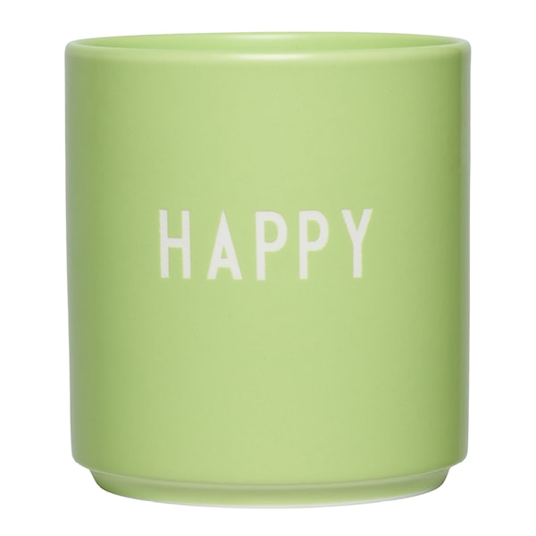 Favourite cup från Design Letters med texten "HAPPY" är tillverkad i benporslin och kommer i en fräsch färg kallad shadow lime. Den matta glasyren ger koppen ett mjukt uttryck, och det graverade ordet på framsidan sätter stämningen – en enkel påminnelse om glädje i vardagen.