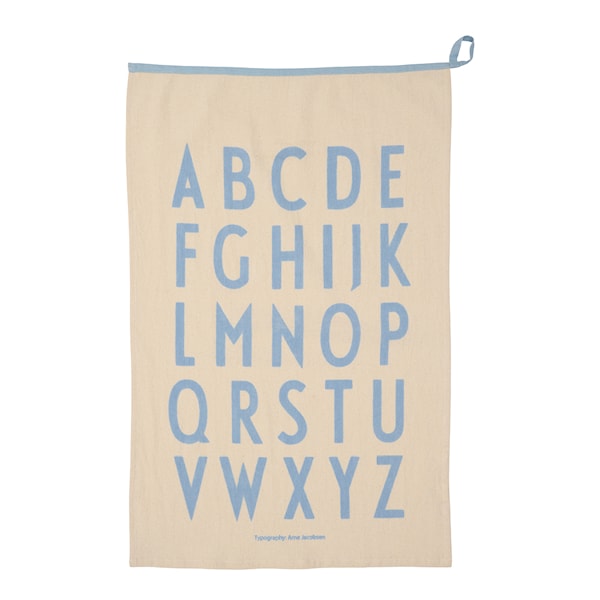 Favourite Premium Classic kökshandduk 50 x 70 cm i natur och ljusblå från Design Letters är en vidareutveckling av den populära kökshandduken från 2011. Handduken är dekorerad med Arne Jacobsens Vintage ABC och har en generös storlek som ger både praktisk funktion och ett dekorativt uttryck.