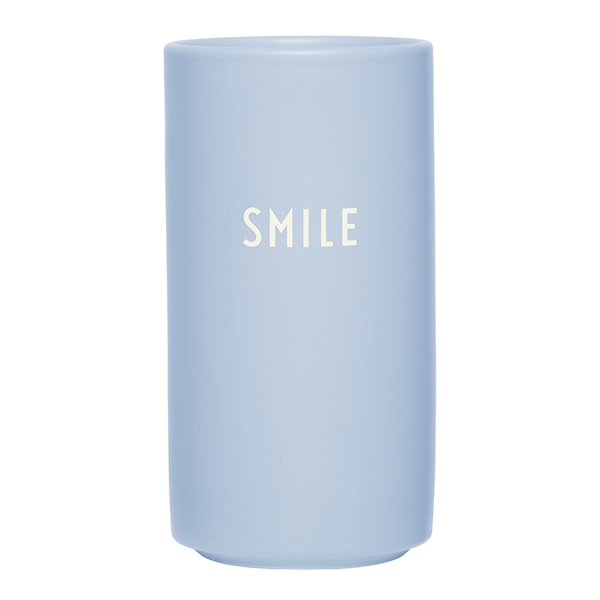 Favourite vase "SMILE" från Design Letters är en liten och mångsidig vas med ett tydligt uttryck. Med sin kompakta höjd på 11 cm och färgen dusty blue passar den utmärkt för en ensam blomma eller en liten bukett. Vasen kan även användas som ljusstake genom att sätta in en separat ljusinsats. Utöver det passar den perfekt som pennhållare, tandborsthållare och redskapshållare - bara fantasin sätter gränser för alla dess användningsområden.