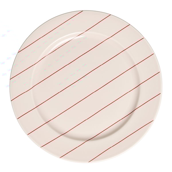Tallriken passar lika bra i en genomtänkt dukning som som en dekorativ detalj på en kökshylla. Serien finns även med ränder i midnight blue, tendril green och coral red, så att du kan välja den färg som passar din personliga stil.