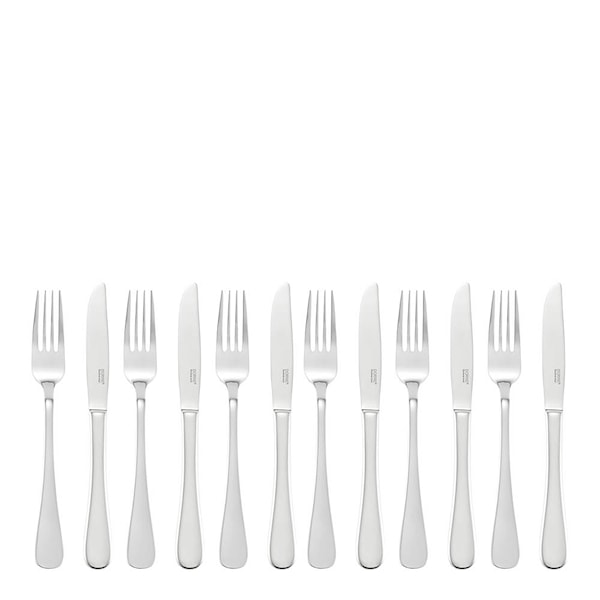 Komplett set med 6 dessertgafflar och 6 dessertknivar i tidlös design
