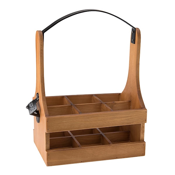Tage Flaskback. Välj dryck, fyll upp flaskbacken och lämna över den perfekta presenten. Eller förvara och servera dryck hemma med stil. På sidan av träbacken finns en kapsylöppnare i järn som matchar smideshandtaget. Fyll och ställ på buffebordet eller baren, ta med till poolen, stranden eller ut i naturen.