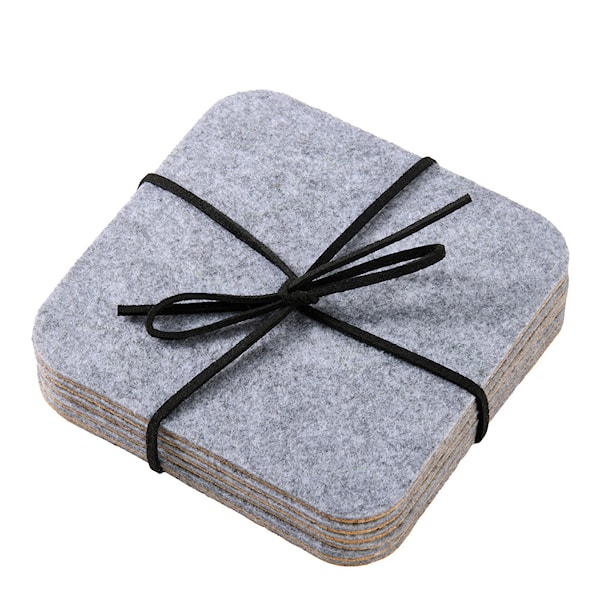 Skydda dina bord med stil med Gia Glasunderlägg i grå filt. Setet innehåller sex underlägg med dimensionerna 10x10 cm , vilket ger en elegant och praktisk lösning för ditt bordsskydd.