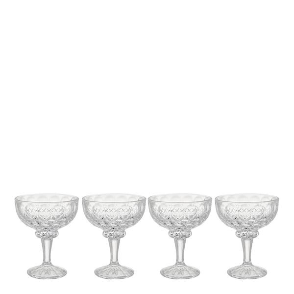 Dessertskål i glas 4-pack från Dorre. Vackra och klassiskt utformade dessertskålar som är perfekta att servera desserter, glass och puddingar ur.