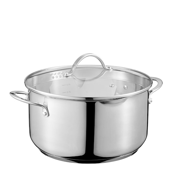 Med glaslocket ser du maten utan att lyfta på locket, och de ergonomiska handtagen ger trygg och bekväm hantering. Grytan är ett pålitligt val för både vardag och fest.