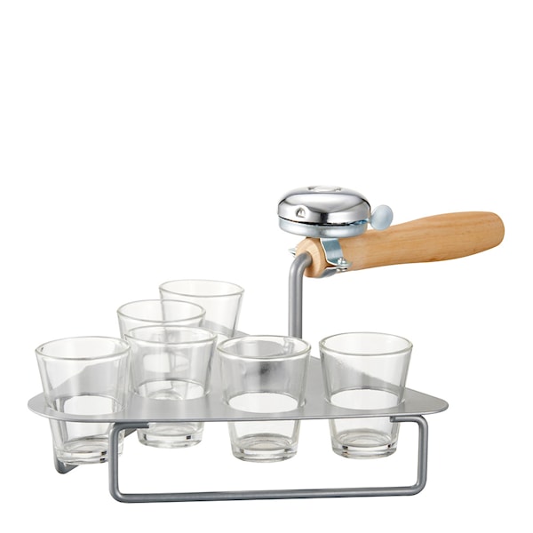 Kombinerar en shotglasställ och en ringklocka i ett