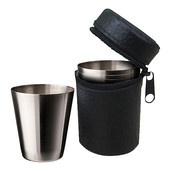 Snapsmugg Benny från Dorre. Snapsglasen är tillverkade av rostfritt stål och kommer i ett läderetui. Volym 3 cl. Säljs i 4-pack.