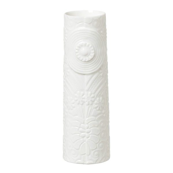 Denna vas är mångsidig och kan användas för både färska och torkade blommor, men fungerar även utmärkt som en dekorativ detalj på skrivbordet, till exempel som penn- eller blyertshållare. Minivasen är handgjord med stor omsorg för detaljer, vilket gör varje exemplar unikt. De subtila blommotiven ger en känsla av naturlig skönhet, och den neutrala vita färgen gör den lätt att placera i både modern och klassisk inredning.