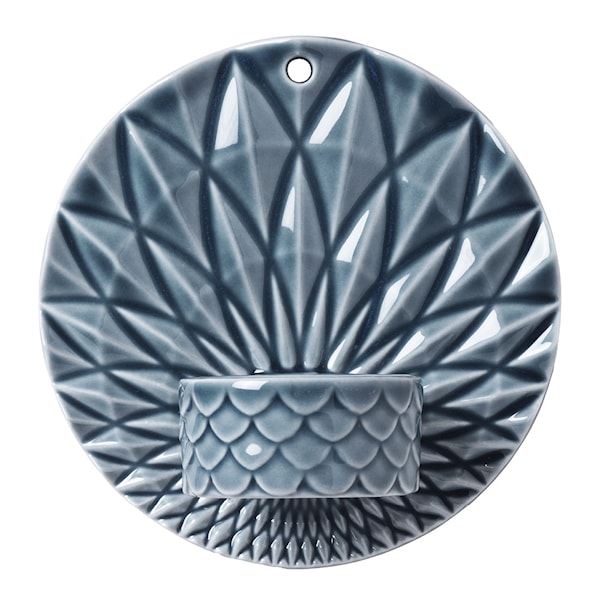 Pipanella väggljusstake, 11,5 cm, i färgen midnight från Dottir, designad av Charlotte Adrian, är en utsökt väggmonterad värmeljushållare som tillför både värme och elegans till ditt hem. Denna vackra ljushållare har ett intrikat skalmönster och en djup, blank midnattsblå glasyr som reflekterar ljuset och skapar en magisk glöd när ljuset fladdrar i mörkret. Den rika blå nyansen och den glänsande glasyren gör detta till en slående detalj på väggen och ger djup och sofistikering till vilket rum som helst.