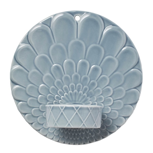 Skapa stämning med Pipanella Harlequin Large Wall Votive vägghängda värmeljushållare från Dottir. Denna 17,4 cm höga ljushållare i blågrå keramik hängs på väggen och ger ett vackert ljusspel.