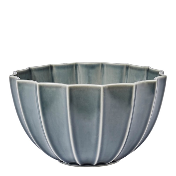 Samsurium skål 17,5 cm från Dottir är både ett konstverk och ett praktiskt serveringskärl. Den djupa färgen och den blanka glasyren lyfter fram den räfflade ytan och ger skålen ett lyxigt och distinkt utseende.