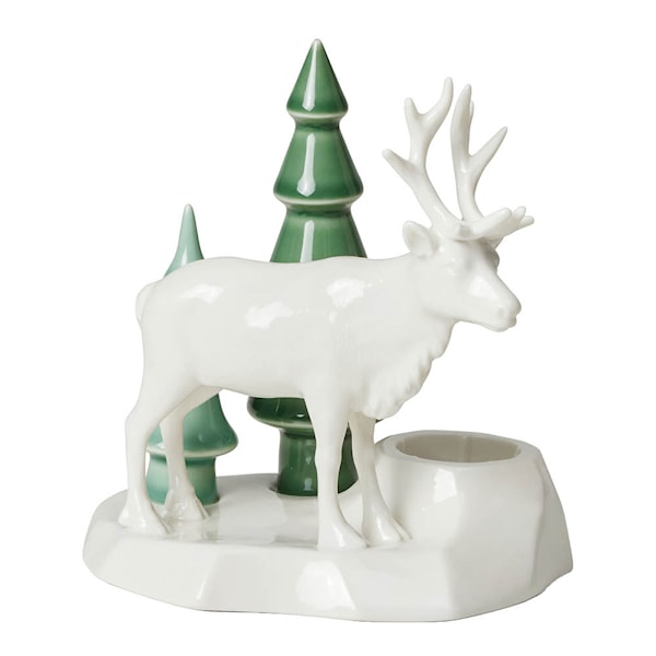 Låt dig förtrollas av Winter Stories Reindeer ljusstake från Dottir, 14,5 cm hög och formad som en ren i skogens stilla landskap. En dekorativ ljusstake som fångar vinterns magi.