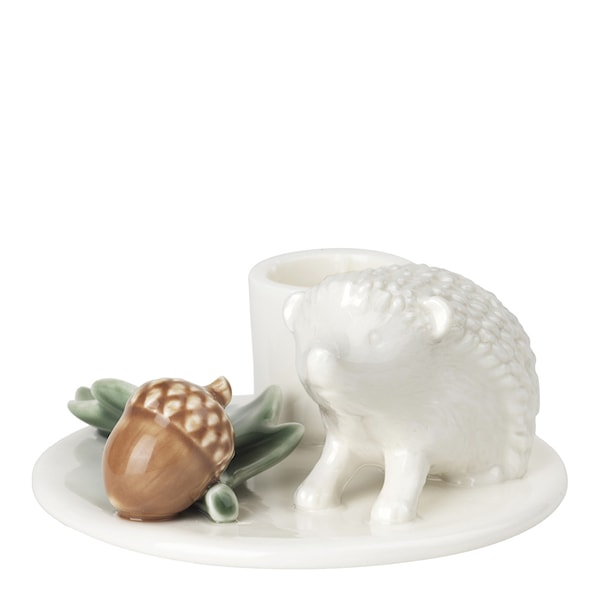 Winter Stories igelkottsljusstake från Dottir, designad av Charlotte Adrian, är en charmig dekoration som för med sig ett uns av skogens lugn in i hemmet under de kalla vintermånaderna. Denna unika ljusstake, skapad med stor känsla för detaljer, visar ett bedårande porslinsigelkott som nosar runt bland skogens botten, omgiven av ekollon och ekblad. Den lekfulla designen skapar en mysig atmosfär där ljusets milda sken sprider ett varmt ljus i vintermörkret.