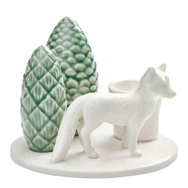 Winter Stories ljusstake Räv från Dottir, designad av Thora Finnsdottir, tillför ett inslag av magi och elegans till vinterns dekorationer. Denna keramiska ljusstake visar en graciös räv som står bredvid två detaljerade tallkottar och tillsammans skapar de en stämningsfull skogsscen. Med sitt fina hantverk och naturliga detaljer förmedlar ljusstaken en känsla av vänskap och ro – en perfekt följeslagare för de långa, mysiga vinterdagarna.