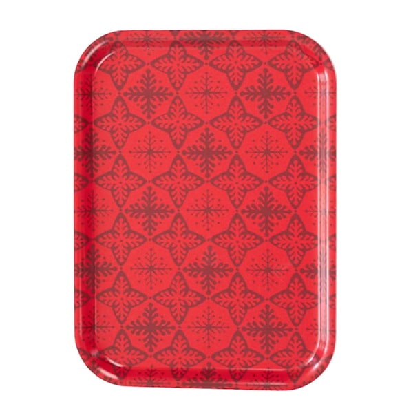 Rotor Design Serveringsbricka snöstjärna röd är en stilren och stämningsfull bricka som passar perfekt för julens alla tillfällen. Det tonade mönstret av röda snöstjärnor mot röd bakgrund skapar ett elegant uttryck som harmoniserar med både klassisk och modern juldukning.
