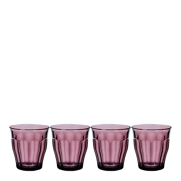 Detta set med fyra Picardie-vattenglas från Duralex kombinerar funktion och design. Glasen rymmer 25 cl och är tillverkade av stöttåligt, härdat glas – perfekta för både vardag och fest. Den ikoniska fasettformen ger ett bra grepp och reflekterar ljuset på ett sätt som framhäver färgen på både glaset och innehållet.