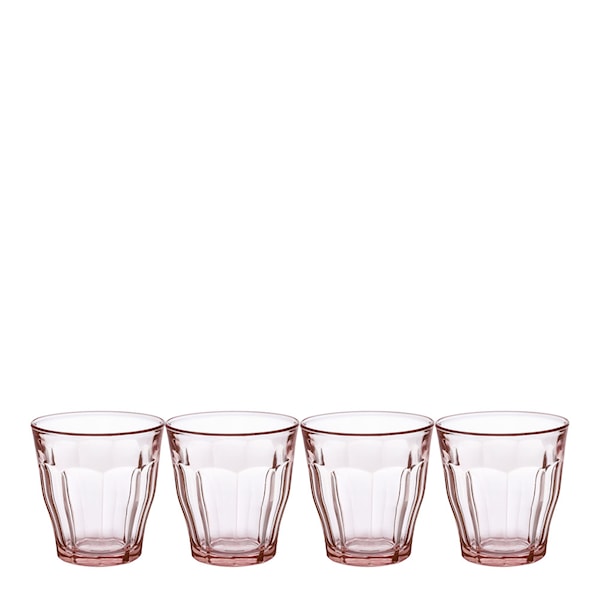 Detta set med fyra Picardie-vattenglas från Duralex kombinerar funktion och design. Glasen rymmer 25 cl och är tillverkade av stöttåligt, härdat glas – perfekta för både vardag och fest. Den ikoniska fasettformen ger ett bra grepp och reflekterar ljuset på ett sätt som framhäver färgen på både glaset och innehållet.