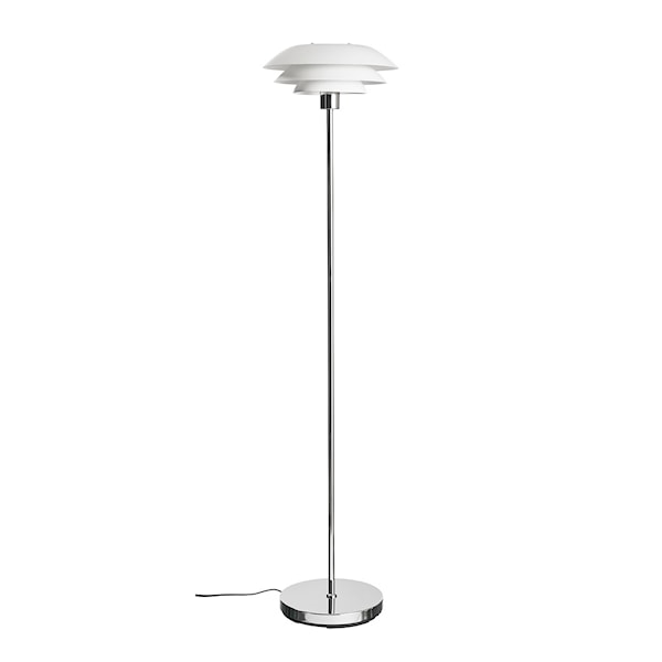 Dyberg Larsens DL31 golvlampa är en tidlös klassiker som kombinerar funktionalitet och estetik. Lampans tre-lagers skärmar i metall sprider ljuset jämnt runt lampan och skapar en behaglig atmosfär, perfekt både för vardagsrummet och kontoret. Den stilrena lampfoten ger lampan ett sofistikerat intryck, medan den slanka höjden på 133 cm och diameter på 31 cm gör den till en diskret men ändå framträdande del av inredningen.