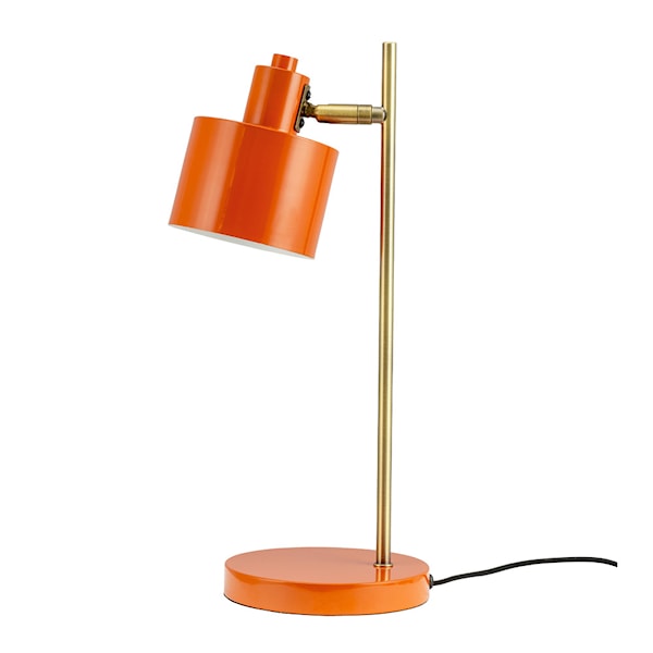 Ocean bordslampa från Dyberg Larsen är en stilren och funktionell lampa med en retroinspirerad design som ger hemmet ett fräscht och unikt uttryck. Med en höjd på 43 cm och en iögonfallande orange skärm kombinerad med mässingsdetaljer tillför lampan en varm och energisk atmosfär till rummet. Det kompakta formatet gör den idealisk för användning på nattduksbordet, skrivbordet eller ett sidobord.