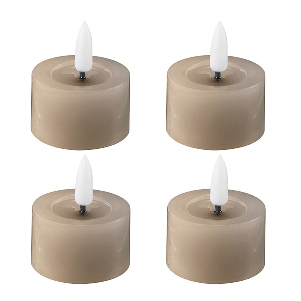 Dessa LED-värmeljus från Edelweiss mäter 4,5 x 2,5 cm och levereras i ett 4-pack. De är designade med smält ovankant och verklighetstrogen låga som skapar känslan av äkta stearinljus. Den vaxade ytan bidrar till ett mer realistiskt utseende.