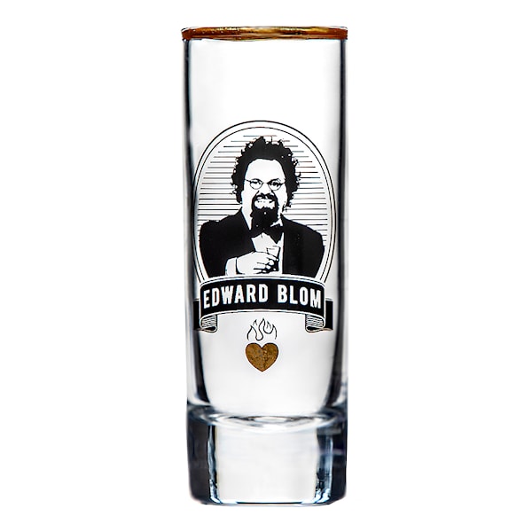 Sätt guldkant på tillvaron med detta shotglas signerat Edward Blom. Citatet på baksidan på glas nummer 3 lyder: "Allting gott och alldeles för mycket!"