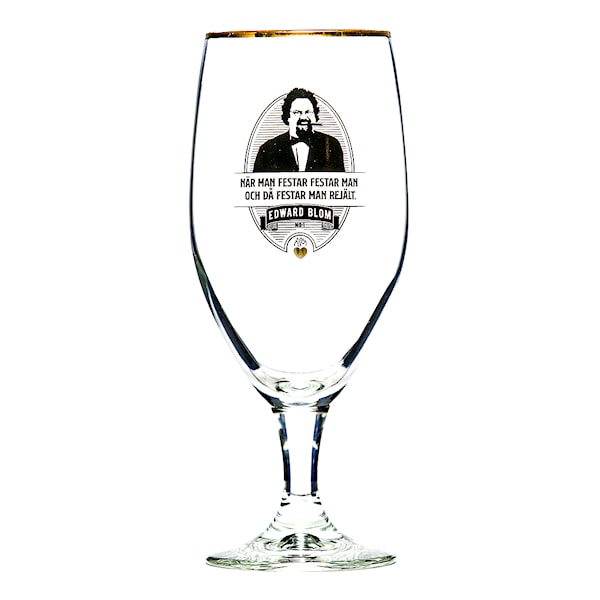 Sätt guldkant på tillvaron med detta ölglas på fot signerat Edward Blom. Citatet på glas nummer 1 lyder: "När man festar festar man och då festar man rejält."