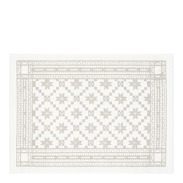 Låt bordet tala för sig själv med Åttebladrose bordstablett i en mjuk beige ton. Det klassiska mönstret och den nedtonade färgen skapar en harmonisk dukning som passar året runt.