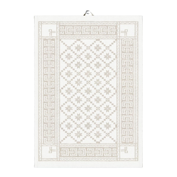Med sitt klassiska mönster och sin varma beige ton blir Åttebladrose handduk från Ekelund ett stilrent inslag i både kök och badrum. Den större storleken på 50x70 cm gör den praktisk att använda som kökshandduk, gästhandduk eller till servering.