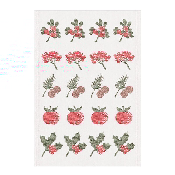 Bärkvist handduk 35x50 cm från Ekelund kombinerar funktionalitet och design. Det grafiska mönstret i rött gör den till ett blickfång, samtidigt som den är praktisk i vardagen.