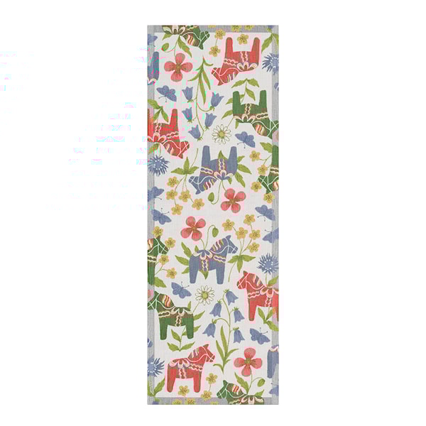 Blomsterhäst bordslöpare från Ekelund, 35x100 cm, är ett stilfullt och tidlöst tillskott till ditt hem. Med sitt delikata mönster och eleganta design förhöjer den både vardagliga och festliga bordsdukningar. Använd löparen direkt på bordet för ett rent och modernt uttryck, eller kombinera med en större duk för att skapa en mer sofistikerad känsla. Dess harmoniska mönster ger en inbjudande atmosfär som gör måltiderna ännu trevligare.