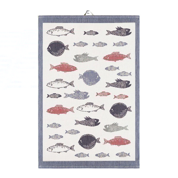 Med sitt charmiga fiskmönster blir Firrar handduk från Ekelund ett livfullt inslag i hemmet. Måttet 40x60 cm gör den mångsidig – perfekt som kökshandduk, liten gästhandduk eller dekorativ textil på ett bord.