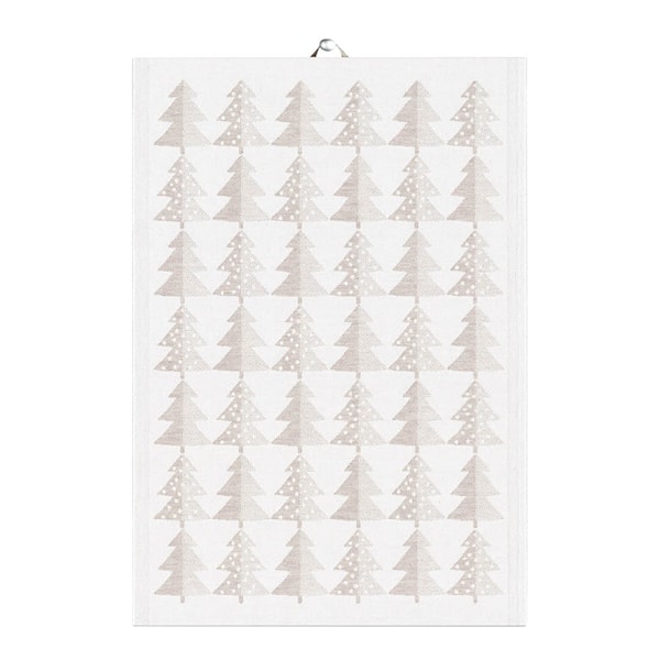 Ekelund Granar kökshandduk 35x50 cm i oblekt ton är en elegant textil som kombinerar funktionalitet med tidlös design. Det stiliserade granmönstret i neutrala nyanser skapar en diskret och naturlig känsla som passar lika bra under vinterhalvåret som till julens dukningar.