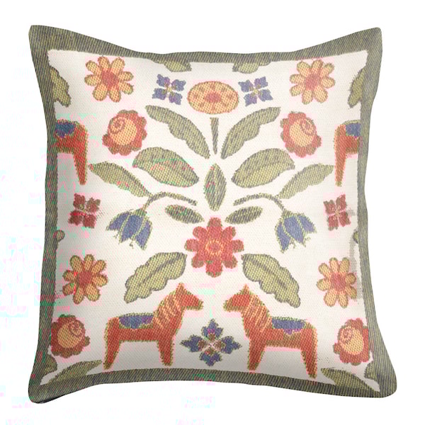 Kurbitsblom kuddfodral från Ekelund, i storleken 40x40 cm, kombinerar klassiskt kurbitsmönster och dalahästmotiv med en modern känsla. Dess tidlösa design och mjuka material skapar en harmonisk och sofistikerad atmosfär, oavsett om det placeras i vardagsrummet, sovrummet eller en läshörna. Tillverkad av 100 % ekologisk bomull är fodralet både mjukt och hållbart, vilket gör det perfekt för dagligt bruk.