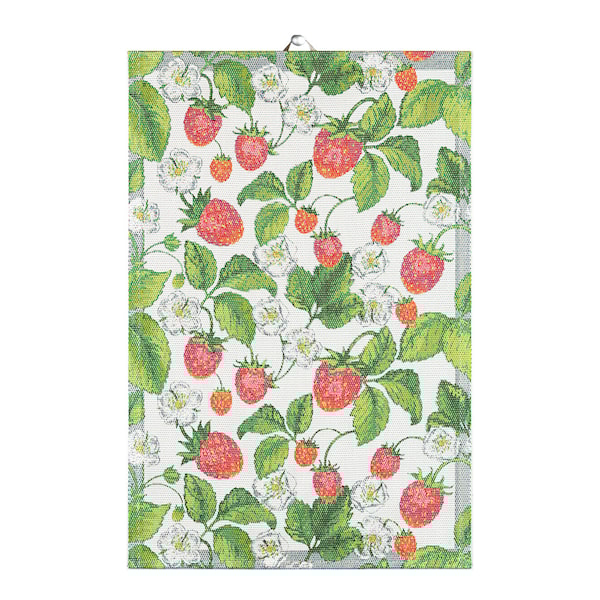 Med Jordgubbar kökshandduk från Ekelund adderar du en gnutta sommar till köket – året om. Mönstret med jordgubbar ger en nostalgisk känsla och passar lika bra i stugan som i det moderna köket. Handduken är tillverkad i 100 % ekologisk bomull, vilket ger en textil som både tål vardagsbruk och tvätt i 60 °C.