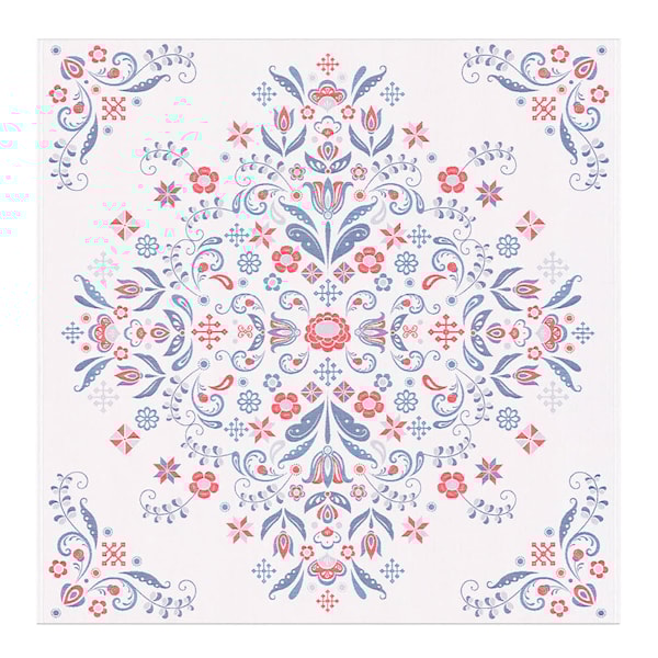 Torplyckan bordsduk 145×145 cm från Ekelund bjuder in till långa samtal och lugna måltider. Det blå mönstret ger en känsla av svensk sommaridyll, samtidigt som den kvadratiska formen passar utmärkt till både runda och fyrkantiga bord.