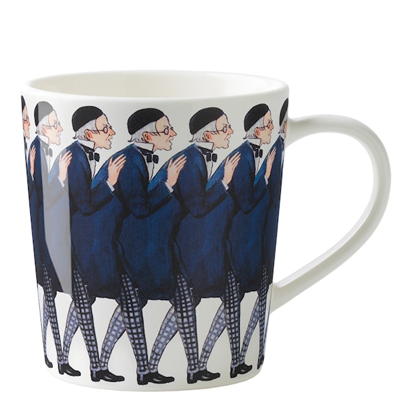 Mellanstor mugg med öra ur Elsa Beskow-kollektionen från Design House Stockholm. Mönstret med Farbror Blå klär runt hela koppen och livar upp den mest vardagliga fikastund. Volym 40 cl.