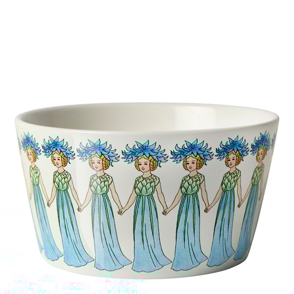 Skål ur Elsa Beskow-kollektionen från Design House Stockholm. Mönstret med blåklint klär runt hela skålen och livar upp både frukosten och efterrätten, och fungerar även utmärkt att servera snacks i. Volym 50 cl.