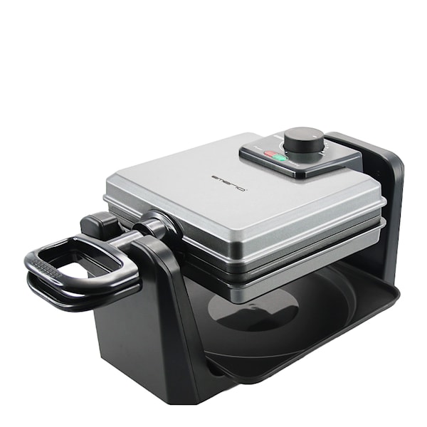 Våffeljärnet har en rostfri och smart design med kapacitet att grädda fyra belgiska våfflor samtidigt. Gräddningsytan har en non-stick-beläggning som gör rengöringen enkel efter användning. Dessutom är järnet vändbart för att säkerställa en jämn och optimal frasighet.