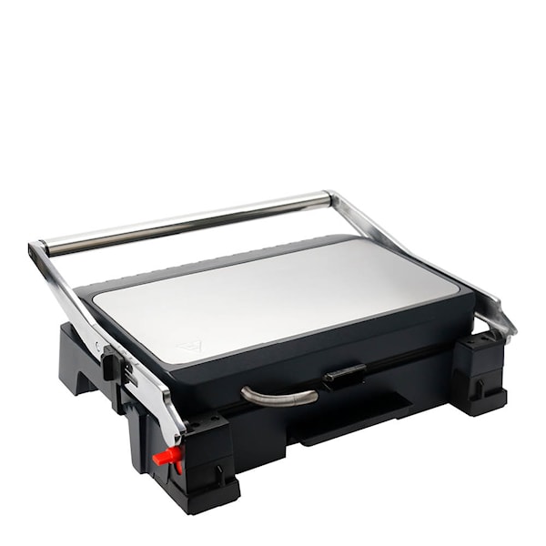 Grillen kan öppnas helt i 180 grader, vilket ger en dubbelt så stor grillyta – perfekt när du lagar mat till hela familjen på en gång. Den justerbara temperaturen ger dig full kontroll över tillagningen, och indikatorlampan visar tydligt när grillen är redo att användas. Den stilrena designen i svart och borstat stål ger ett professionellt intryck, samtidigt som grillen är lätt att hantera och enkel att rengöra efter användning.