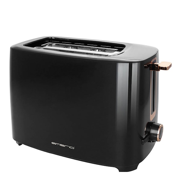Brödrost 2 skivor TO-125131.1 från Emerio är det ideala valet för dig som vill ha perfekt rostade mackor varje gång. Denna eleganta brödrost kombinerar en stilren design i svart med kopparfärgade detaljer som ger ditt kök en modern touch.