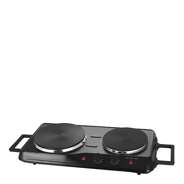 Denna stabila och rejäla dubbelkokplatta har du alltid med dig kok- och stekmöjligheter oavsett var du befinner dig. Med en effekt på hela 2500W, två plattor i gjutjärn och separata temperaturkontroller kan du alltid ta med dig ordentliga kok- och stekmöjligheter dit du vill. Dessutom gör de smidiga handtagen att det är väldigt enkelt att hantera och bära med sig kokplattan. Dubbelkokplattan är snyggt svart och stilren i designen med plattor i gjutjärn med två olika storlekar. Med separata temperaturreglage och indikatorlampor går det snabbt och enkelt att ställa in och ha koll på värmen på respektive platta. Kokplattan står stadigt tack vare de gummerade fötterna på undersidan.