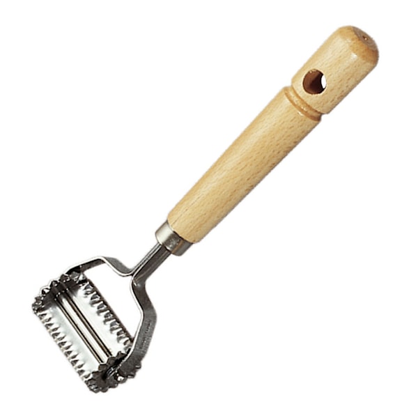 Skäraren är tillverkad av robust aluminium med ett slitstarkt handtag i trä som ger ett naturligt och bekvämt grepp. Denna kombination av material garanterar pålitlighet och lång hållbarhet i köket.