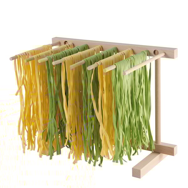 Med denna smarta torkställning kan du hänga din hemmagjorda pasta på tork innan du ska koka den. Torkstället är gjort i tåligt bokträ och kan enkelt fällas ihop för smidigare förvaring.
