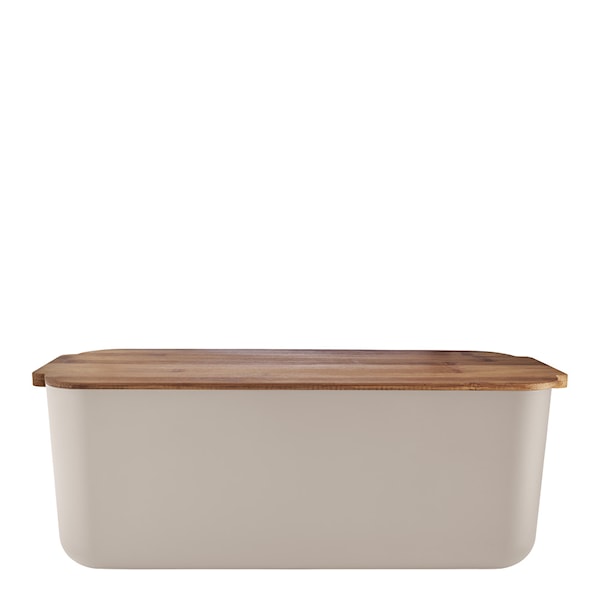 Förvara ditt bröd på ett optimalt sätt och bevara dess färskhet längre med en praktisk brödlåda som står på köksbänken. Lockets konstruktion i karboniserad bambu fungerar dessutom som en robust och integrerad skärbräda med praktiska räfflor för att samla smulor när brödet skivas upp. Lådan i sig tål maskindisk, medan locket bör handdiskas. Tillverkad av plast och karboniserad bambu, har den generösa måtten L: 42 x B: 19 x H: 15,5 cm (9 liter).