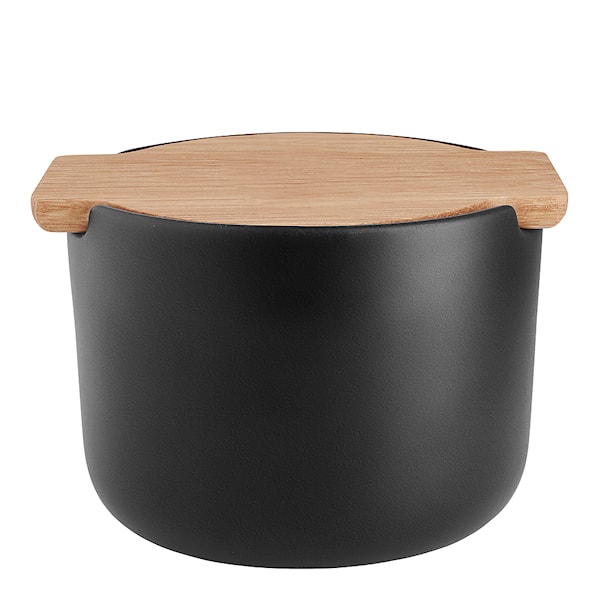 Saltkaret från Eva Solo blir ett elegant blickfång på bordet även när maten är bortdukad. Kombinationen av mattsvart stengods och rustikt ekträ ger saltkaret ett exklusivt och stilrent utseende som enkelt matchas med övrig inredning. Den hygieniska och praktiska lockfunktionen håller saltet torrt och hindrar att fukt eller os att komma in. Karet kan med fördel även användas till annat än salt, till exempel småsaker som du vill förvara på ett snyggt sätt.