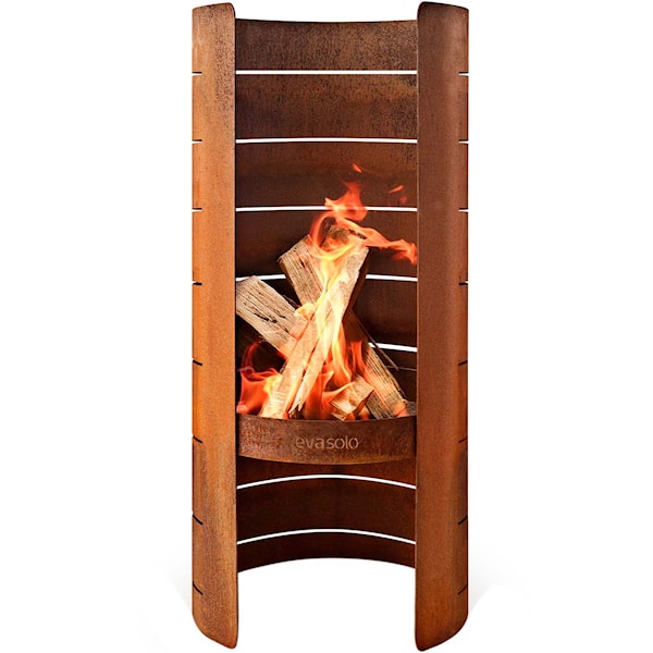 Den inbyggda vindskärmen ger skydd mot drag och gör lågorna mer stabila även när vinden vänder. Eldstaden är tillverkad i vädertåligt cortenstål och klarar att stå ute året runt. Med tiden utvecklar den en unik rostpatina som förhöjer dess råa, naturliga uttryck. Rostet färgar inte av sig som traditionell rost, men viss missfärgning kan förekomma. Komplettera gärna med ett grillgaller för att omvandla FireCylinder till en funktionell grill. Mått: H: 66,5 x Ø: 30,5 cm.