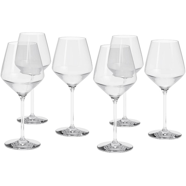 Legio Nova Rödvinsglas 6-pack från Eva Solo fulländar bordsdukningen med en elegant vinglasserie. Legio Nova-glaset är tillverkat av blyfritt kristallglas som ger glaset en strålande glans och alla andra klara fördelar som ett vinglas bör ha. Den vackra klangen, det klirrande ljudet när det skålas, ett utseende som framhäver vinets visuella karaktär – och inte minst den perfekta formen som frigör doftaromerna och låter vinet komma till sin rätt.
