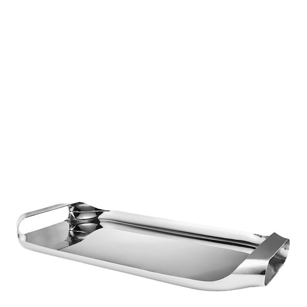 Brickan är tillverkad i ett stycke stål utan synliga skarvar, vilket ger den ett rent och slätt uttryck. De lågt placerade handtagen bidrar till ökad stabilitet och balans, även när brickan är fylld. För extra säkerhet kan du komplettera med en separat silikonmatta som ger bättre grepp för innehållet.